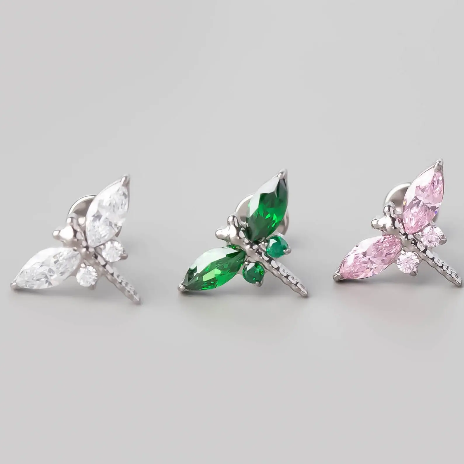 Our CNC Set CZ Dragonfly internally threaded Labret is made from ASTM F136 Implant Grade Titanium, this premium body jewellery labret ensures safety and quality of the highest. It can be worn in piercings such as: tragus, rook, lobe, helix, daith, conch and anti-tragus piercings.